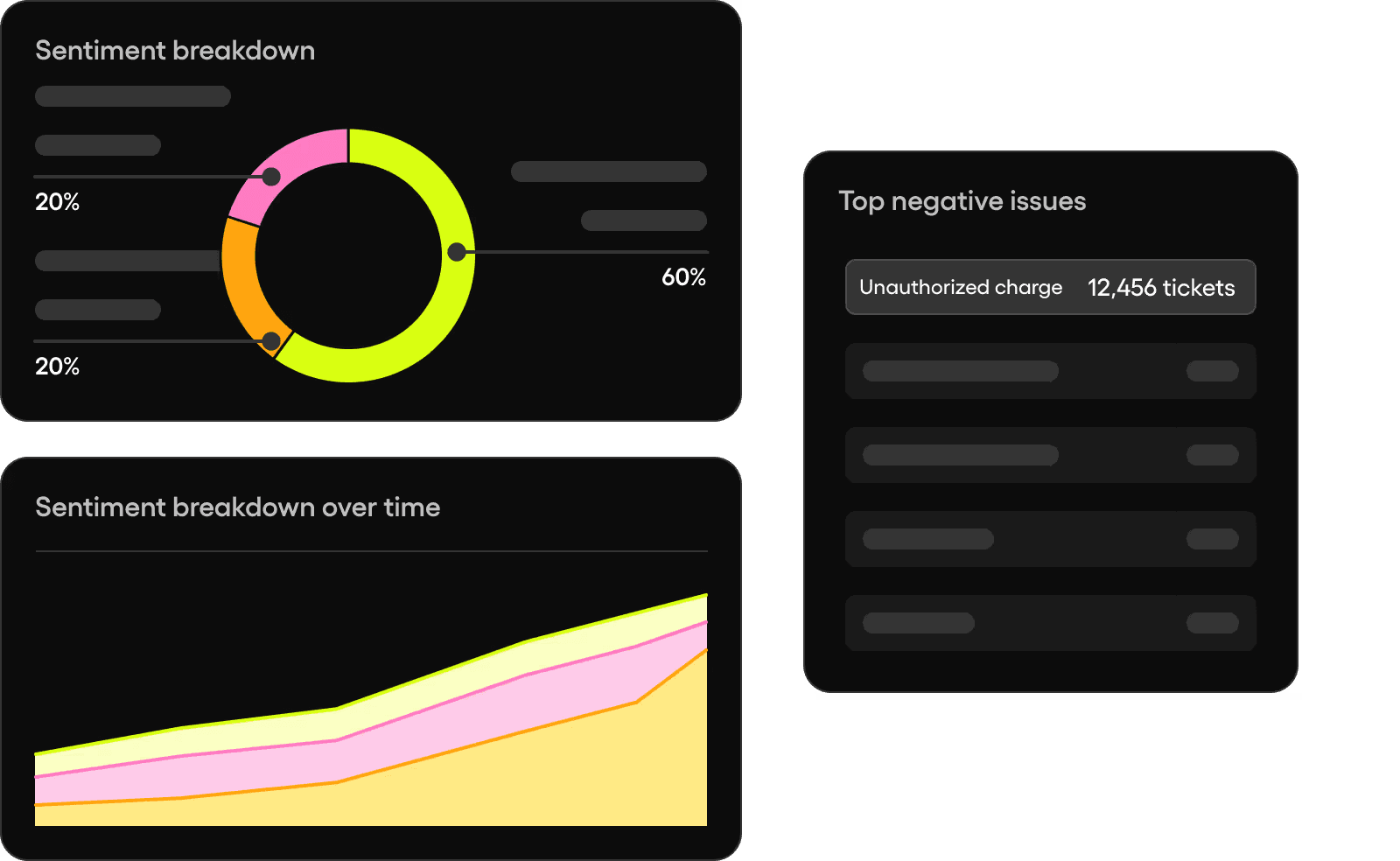 Quickly identify whether customer sentiment is positive, neutral, or negative to uncover trends and take action faster. Understand emotions at scale without any extra effort, so you can improve experiences with confidence.